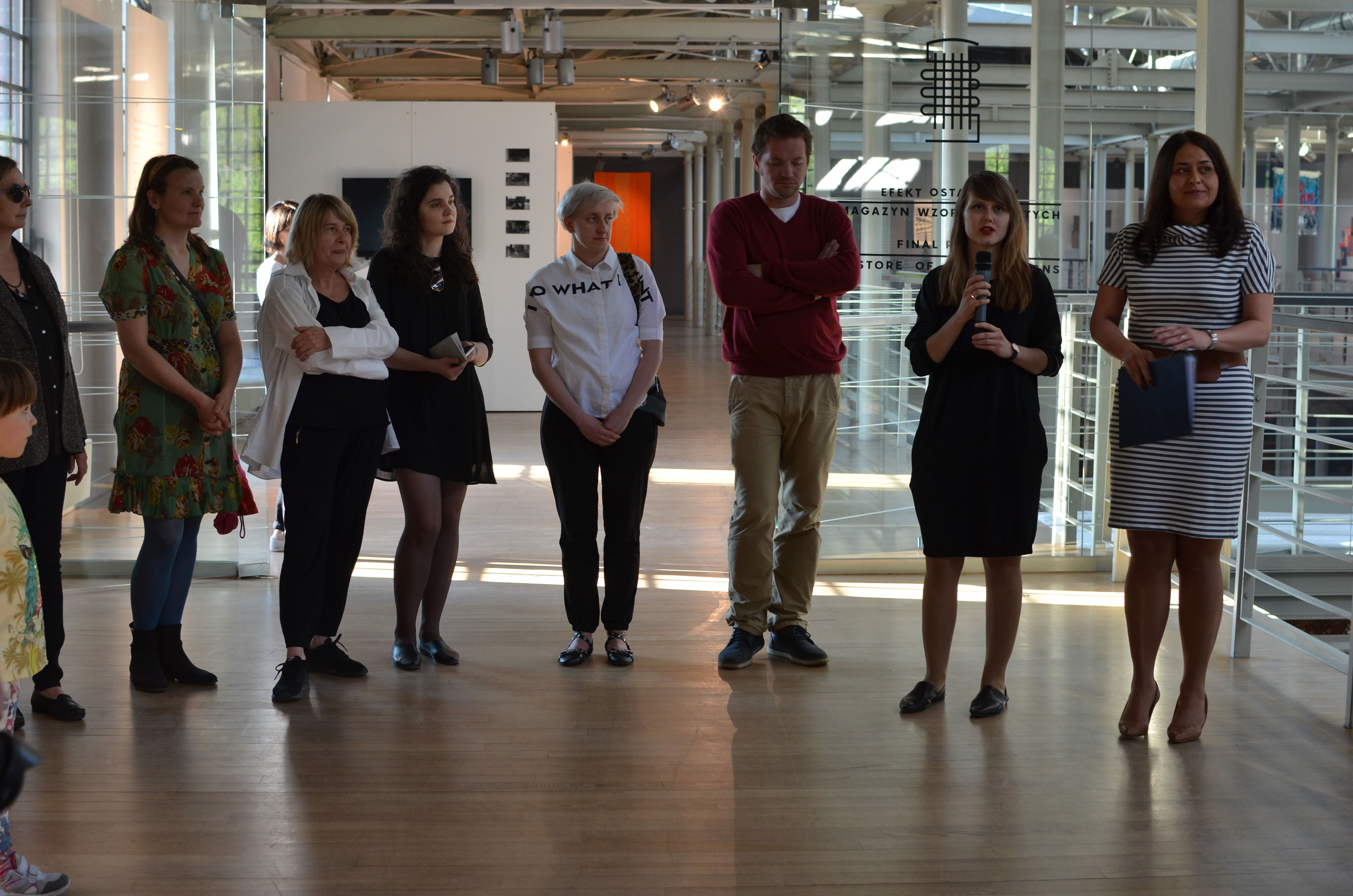 Wystawa „Efekt ostateczny. Magazyn wzorów uszytych” prowokuje do zadawania pytań – wchodząc w jej przestrzeń po białym kobiercu, wkraczamy symbolicznie do świata, którego centralną osią jest zagadnienie tkaniny przemysłowej. Sonia Kądziołka, pochodząca z Łodzi kuratorka wystawy, nadała ekspozycji strukturę przenikających się kręgów tematycznych – teoria/metodologia tkaniny, materia/haptyczność, dotykowość/dotkliwość, pamięć/tożsamość/transformacje, praca włókniarki/praca projektantki/życie codzienne. Multisensoryczność projektu pozwala odbierać prezentowane dzieła przy pomocy wzroku, słuchu oraz, przede wszystkim – dotyku, przedkładając ten właśnie zmysł nad, z reguły dominującą w praktyce prezentowania tkanin, postawę „wzrokocentryczną”. Tkanina jako medium staje się nośnikiem różnorodnych treści. Kuratorka, prezentując fragmenty „interwencyjnych” filmów dokumentalnych o życiu włókniarek, zderza je z głosem młodego pokolenia artystów, kierujących swoje zainteresowanie w stronę przeszłości i teraźniejszości losu robotników pracujących w zlikwidowanych obecnie zakładach przemysłu tekstylnego.