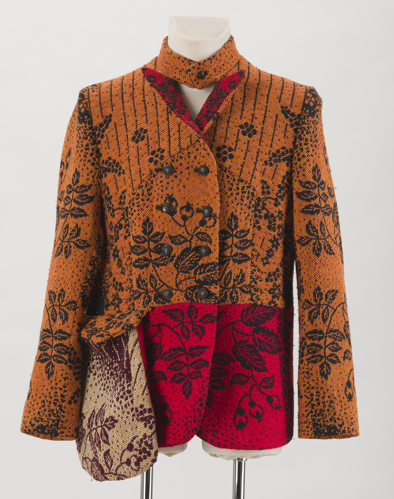 Mikołaj Żurek to najciekawszy początkujący polski projektant, który wykorzystuje tradycje typowe dla polskiej tkaniny do stworzenia nowoczesnych, unikatowych kolekcji ubioru. Kolekcja „Inwokacja” (2021), nagrodzona w konkursie Złota Nitka 2021, inspirowana jest polską szkołą szkła okresu PRL oraz tradycyjnym ubiorem ludowym, m.in. górali śląskich. Wszystkie sylwetki wytypowane do zakupu uszyte zostały z PRL-owskich narzut imitujących tkaniny dwuosnowowe. Dobór materiałów przełożył się na unikatowość każdej sylwetki. Podobnie jak tkaniny, guziki także pochodzą z drugiego obiegu. Projektant wykorzystał guziki produkowane z przeznaczeniem na dawne, polskie mundury wojskowe.